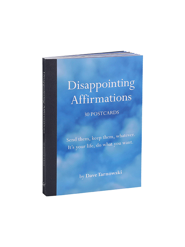 The Disappointing Affirmations postcard set offers a funny take on the inspirational language of a culture that insists that everyone try to remain upbeat in the face of a world that’s clearly not okay, and gives us permission to not be okay as well.