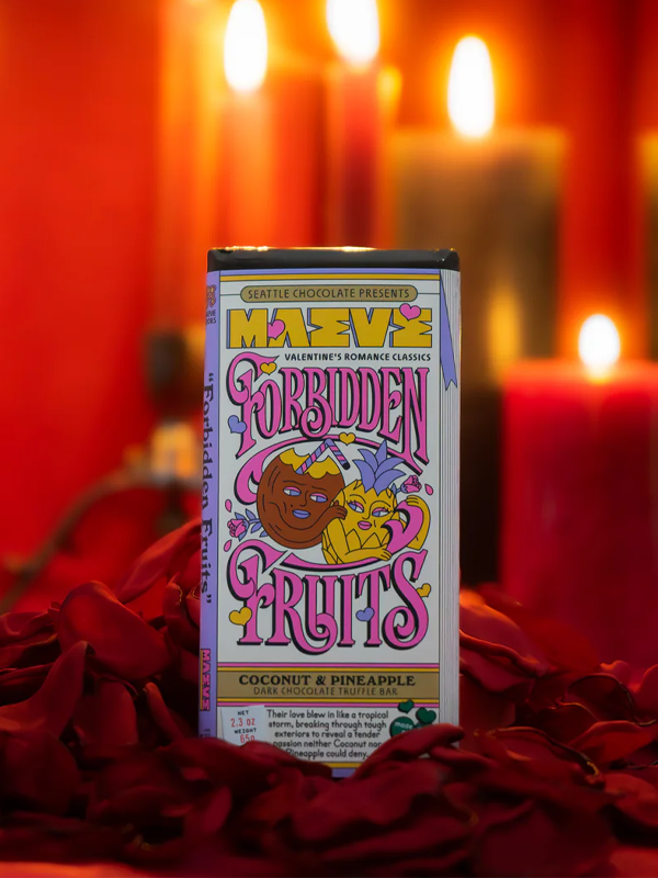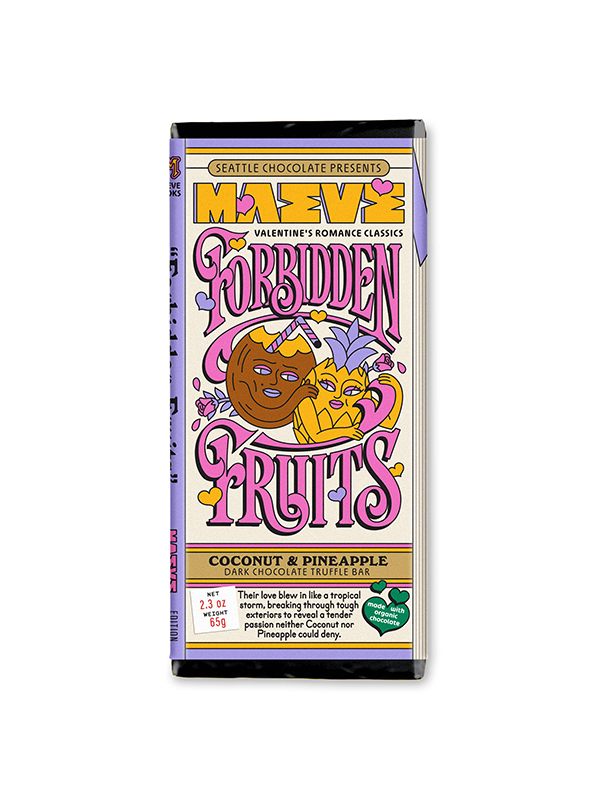 Pineapple and coconut were supposed to live out their days in a piña colada, basking in the sun and minding their own business. But one fateful night, dark chocolate walked in, rich and mysterious and impossible to resist. The air grew thick with temptation, and suddenly paradise didn’t seem big enough for all three. Now it’s passion and toasted coconut, juicy fruit and bittersweet intrigue, wrapped up in one very forbidden bite.
