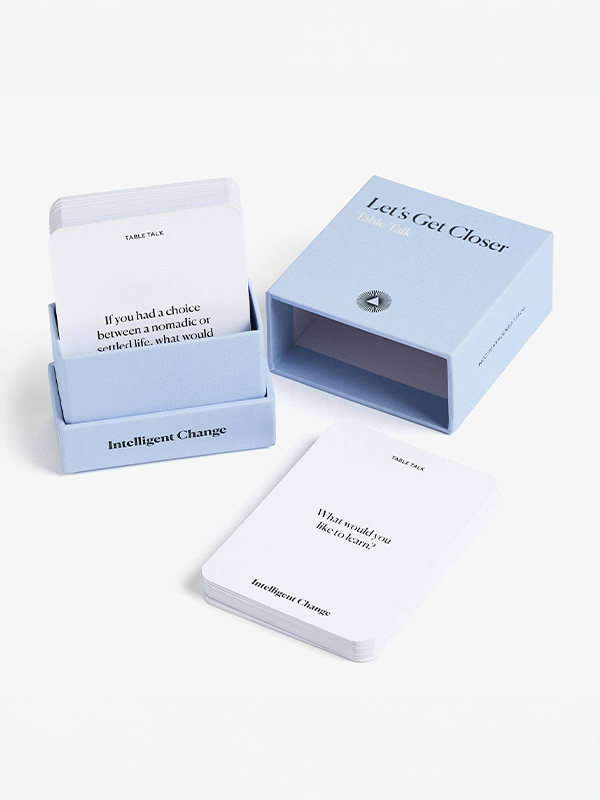Perfect for dinner parties, new introductions, and gatherings with friends, this compact and easy-to-play conversation card game is designed to go beyond typical small talk.