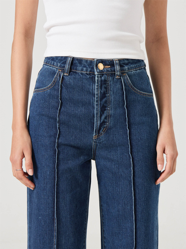 A super high rise, slim fit jean with a wide sailor leg flare. ✨