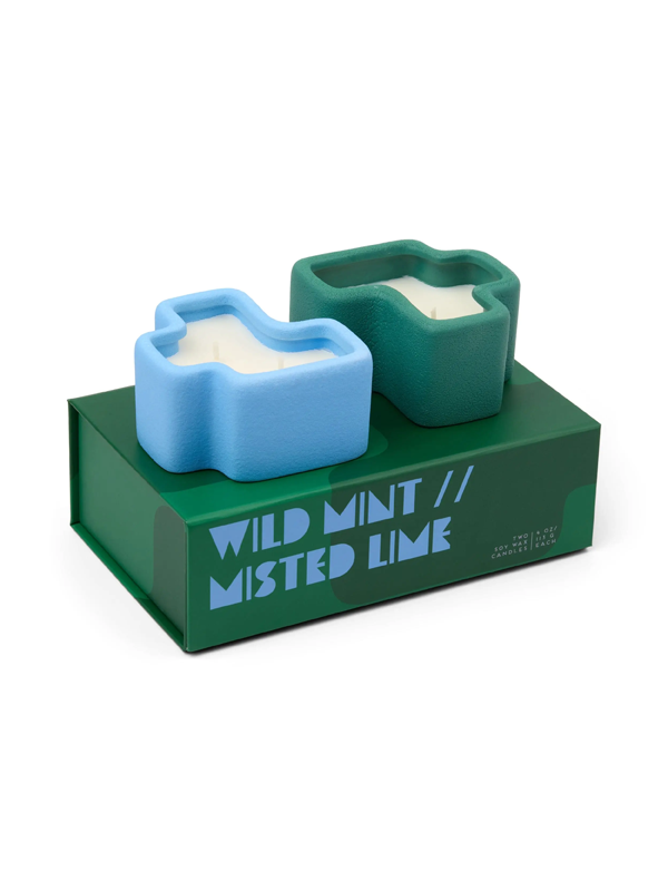 Jigsaw Ceramic Vessel Candles (Set of 2): Wild Mint & Misted Lime