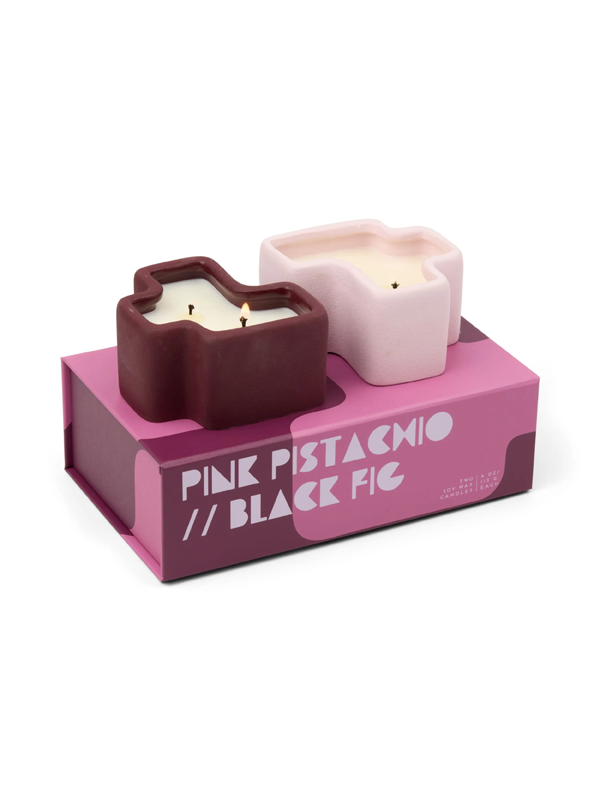 Jigsaw Ceramic Vessel Candles (Set of 2): Pink Pistachio & Black Fig