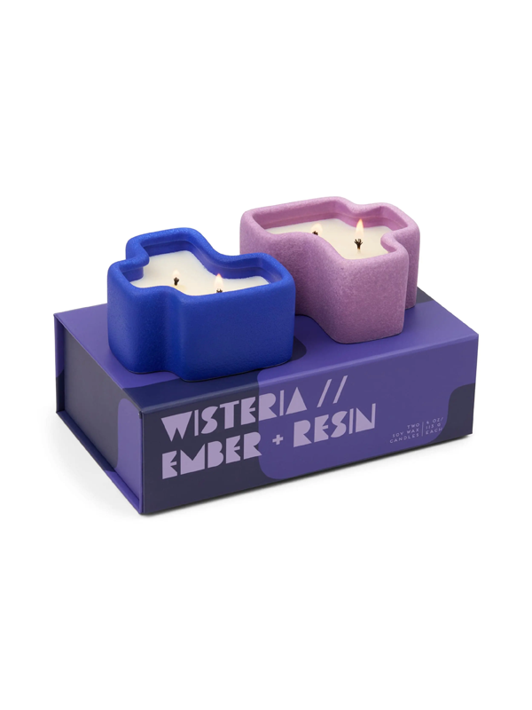 Jigsaw Ceramic Vessel Candles (Set of 2): Wisteria & Ember + Resin
