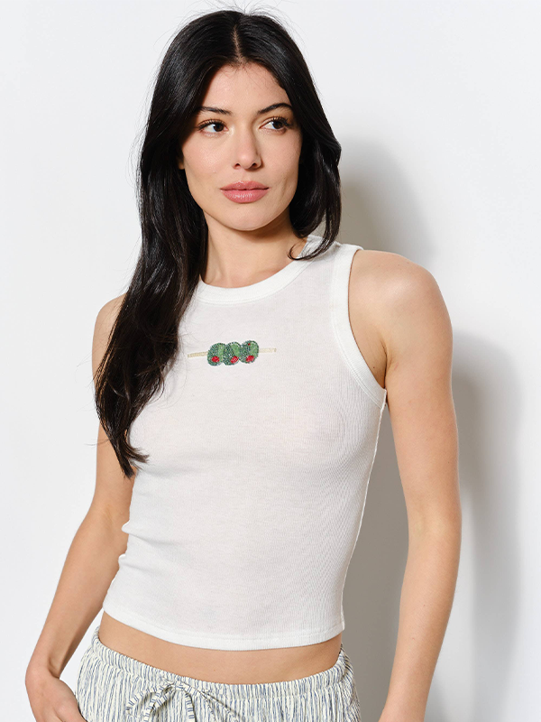 Ozzy Olive Bead Embroidery Tank: Off-White