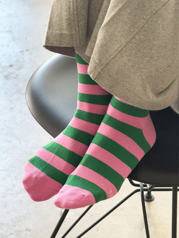 Wally Socks: Wide Pink/Green Stripe