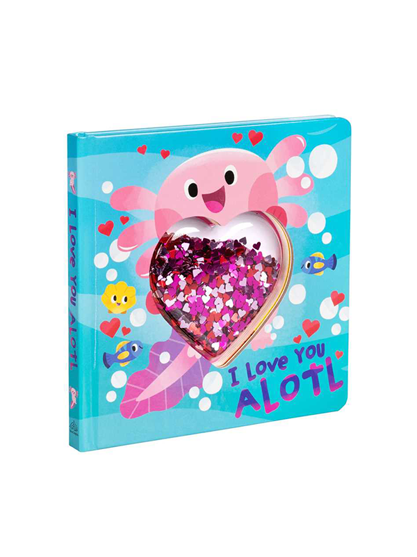 Parents and children alike will love the sweet, rhyming story full of adorable animal puns in I Love You Alotl. This board book features a plastic heart full of pink and red heart sequins that little ones can shake and move on every page for hands-on story time. Bright illustrations featuring adorable llamas, sloths, axolotls, and more, paired with heartfelt text sprinkled with lovey-dovey puns, are sure to make this sparkly interactive book a favorite read at bedtime or anytime!