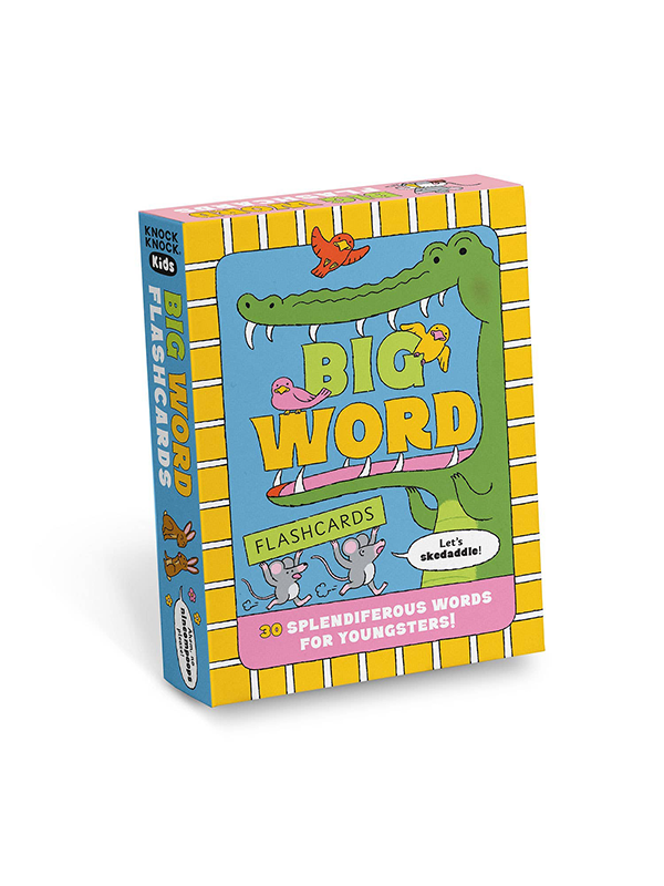 Kids (and grownups!) love to learn and say crazy-sounding words — not to mention impressing others with ’em — so Knock Knock Kids created Big Word Flashcards, featuring some of the wackiest multisyllabic terms in the dictionary.