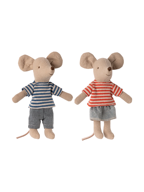 These siblings wear matching striped shirts and love spending time together. With their magnetic paws, they can hold on tight to metal toys, as well as each other. They even come packaged together in a mini cardboard house!