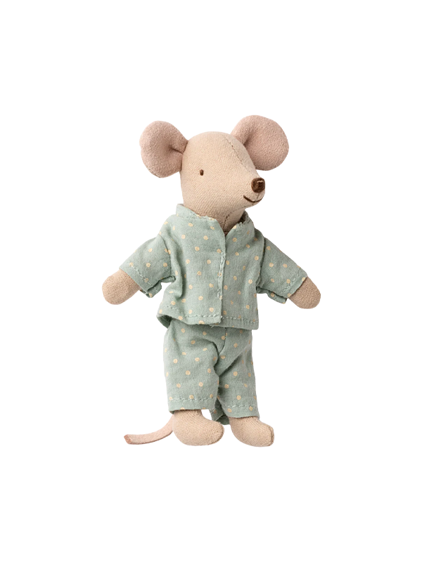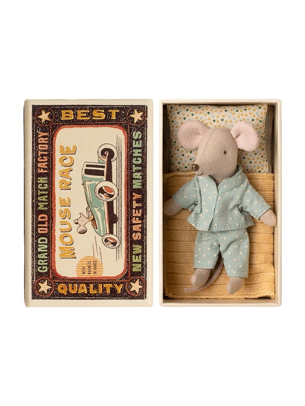 Little Brother Mouse comes tucked inside his very own matchbox bed! Dressed in cozy pajamas, he rests on a soft blanket with a little pillow. His little paws feature magnets for extended play.