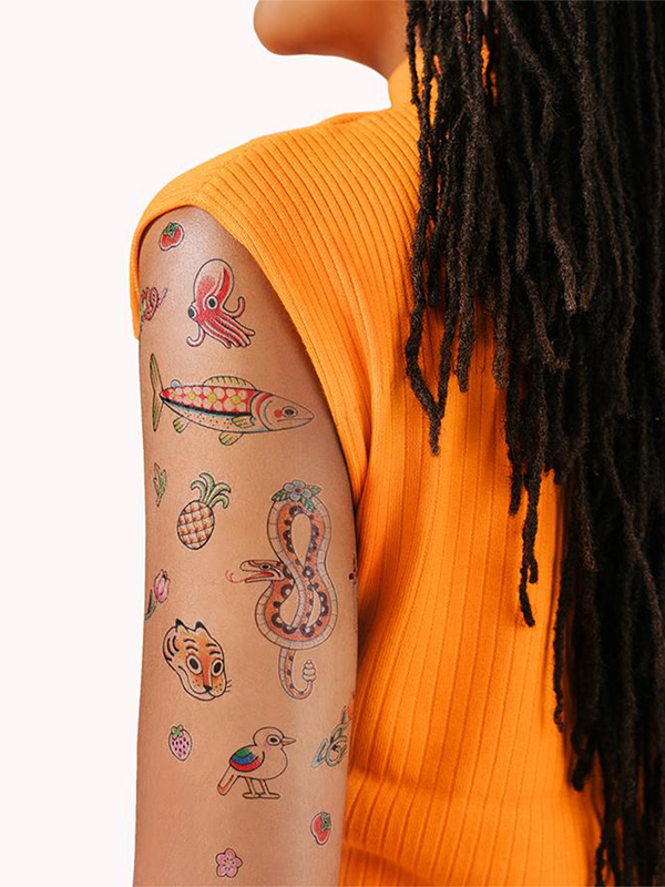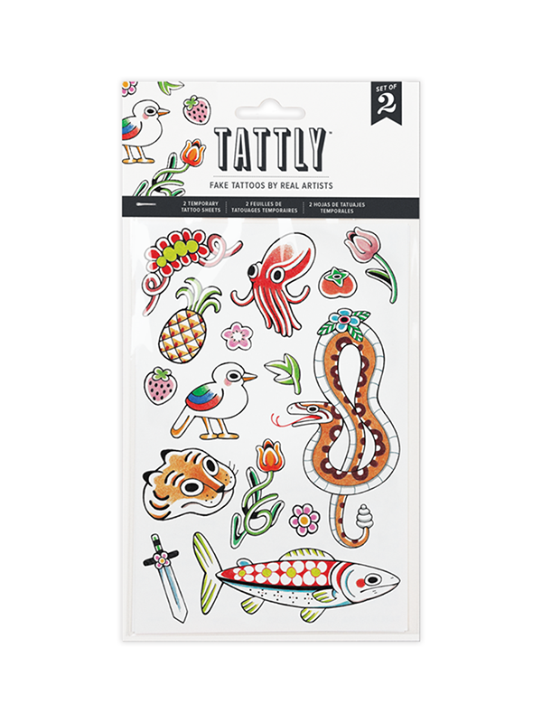 Consider us completely obsessed with tattooer Gossamer Rozen's whimiscal designs, and we're so excited to bring them to you on this new trimmable Tattly sheet.Size: 4"x 6"Tattly are safe and non-toxic, lasting on average 2-4 days. We suggest placing on oil-free areas where skin does not stretch and keep them clean!