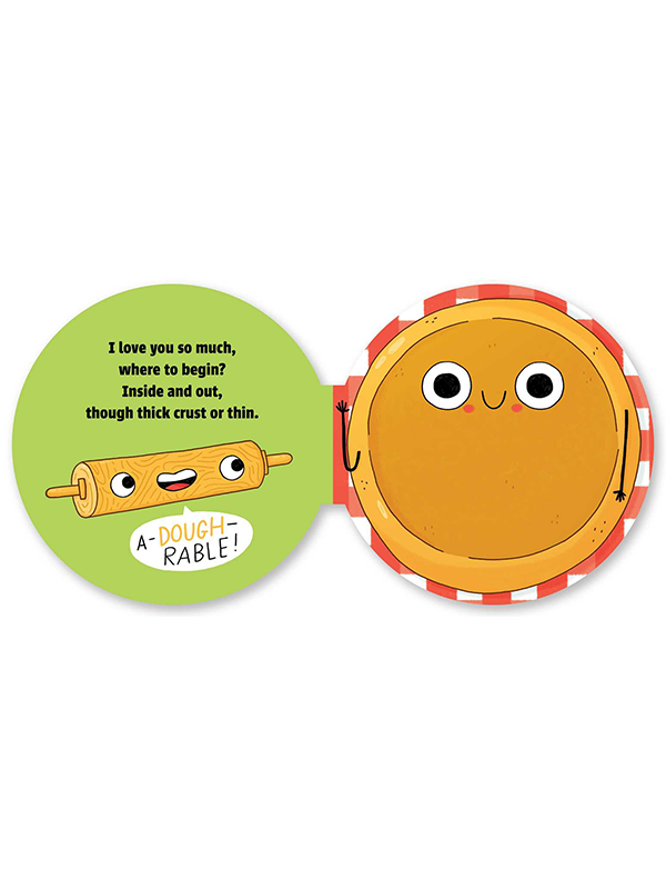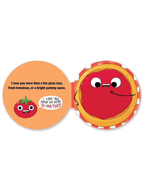 Kids will love this delicious board book, shaped like a pizza, in which love for them is expressed through favorite pizza toppings! Parents can show how mush-room in their heart they have in their heart for the little one, and how they pepper-only have eyes for them!