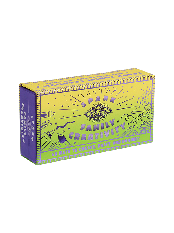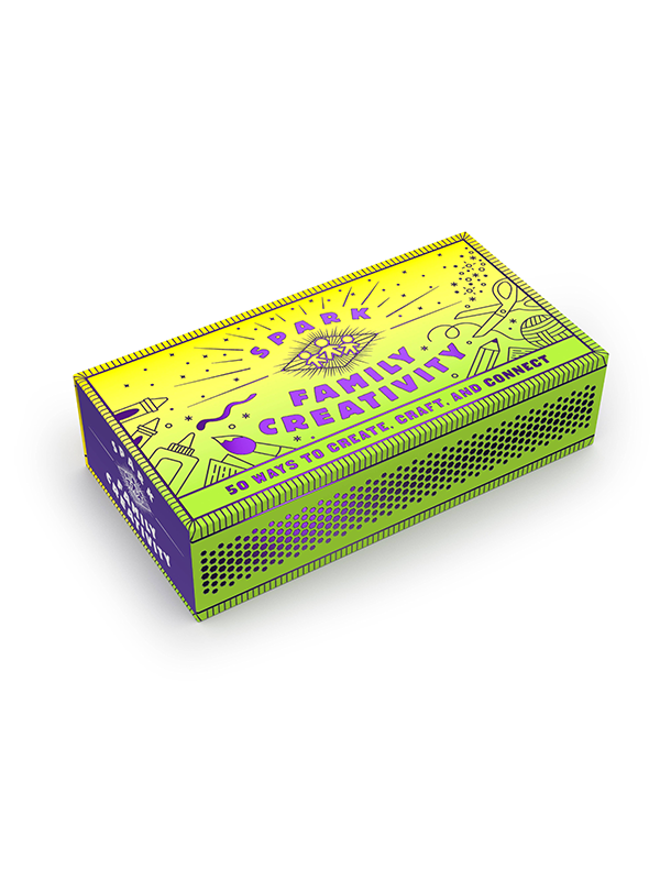 This shimmering faux matchbox is filled with 50 prompts for hands-on activities that encourage connection and creativity for all ages! Design a family crest together, reuse everyday materials to build a tiny town, or craft cards for friends and relatives. With 50 ideas for creative play, this box will spark imagination and screen-free fun on rainy days or whenever boredom strikes.