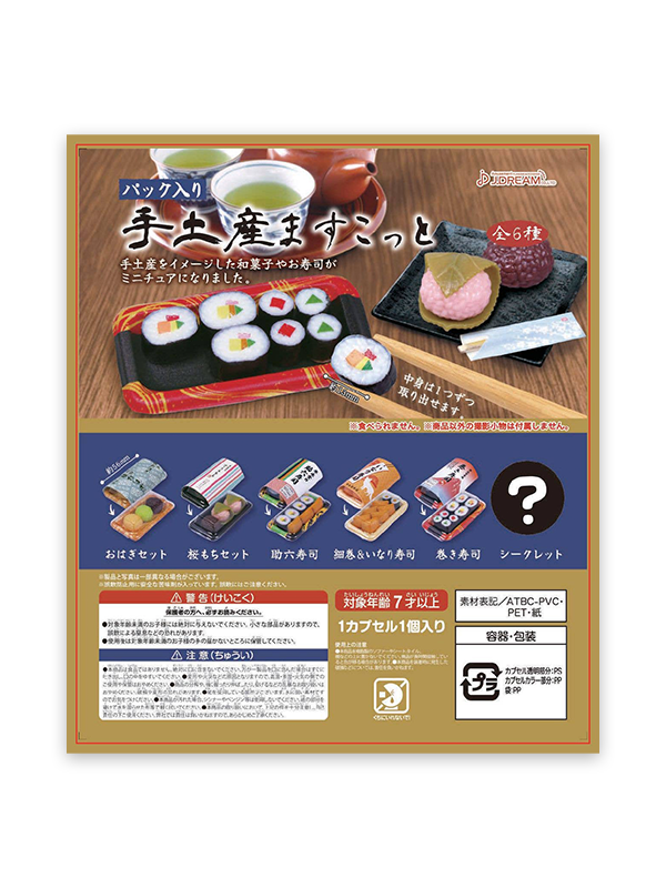 ✦ Single blind capsule containing a random sushi or sweet figurine.