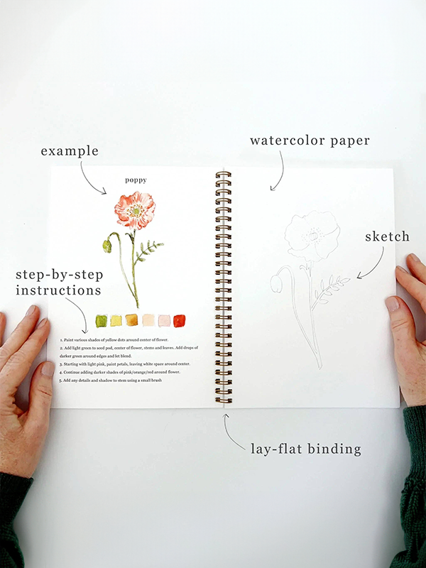 The Flowers Watercolor Workbook provides just the right amount of instructions and relaxing fun to encourage you and the kids to pick up a paintbrush to start watercoloring today.