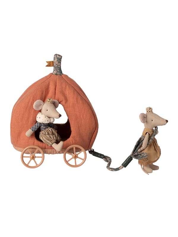 This miniature pumpkin carriage is perfect for transporting the royal mouse family.Â