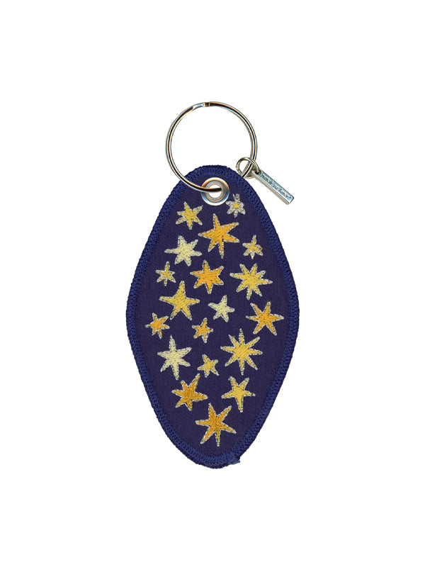 ✦ Single embroidered patch style motel keychain.