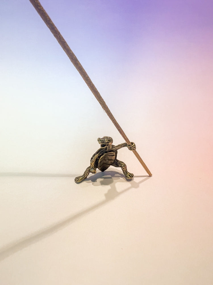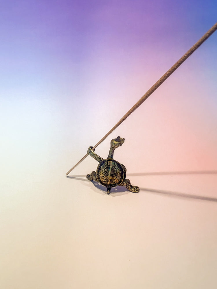 ✦ Mini turtle-shaped incense holder with charming little details and bronze tones.