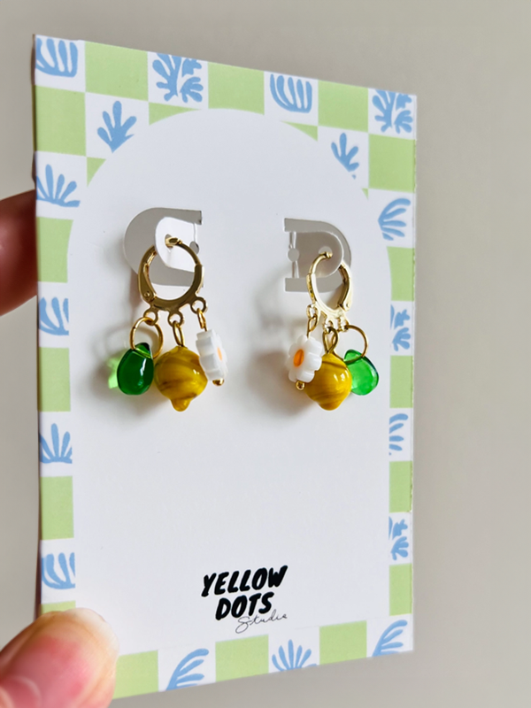 ✦ Handmade beaded earrings complete with gold plated hoops.