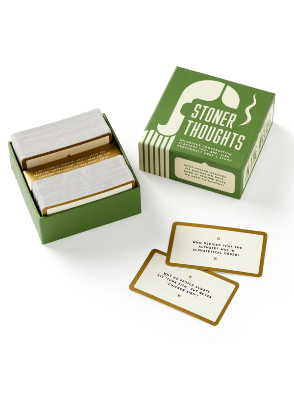 You don’t have to be high to ponder some of life’s most significant, thought-provoking questions — you know, important stuff like ‘do you think popcorn is a vegetable?’ So inside you’ll find 200 hilarious, yet profoundly ‘deep’ topics that are actually fun to talk about. 💨