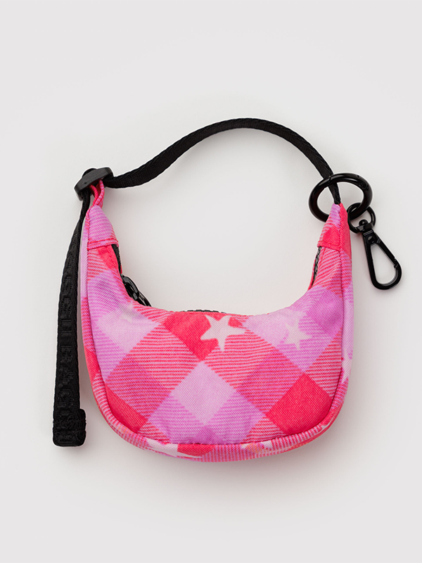 Crescent Bag Charm: Pink Star Plaid