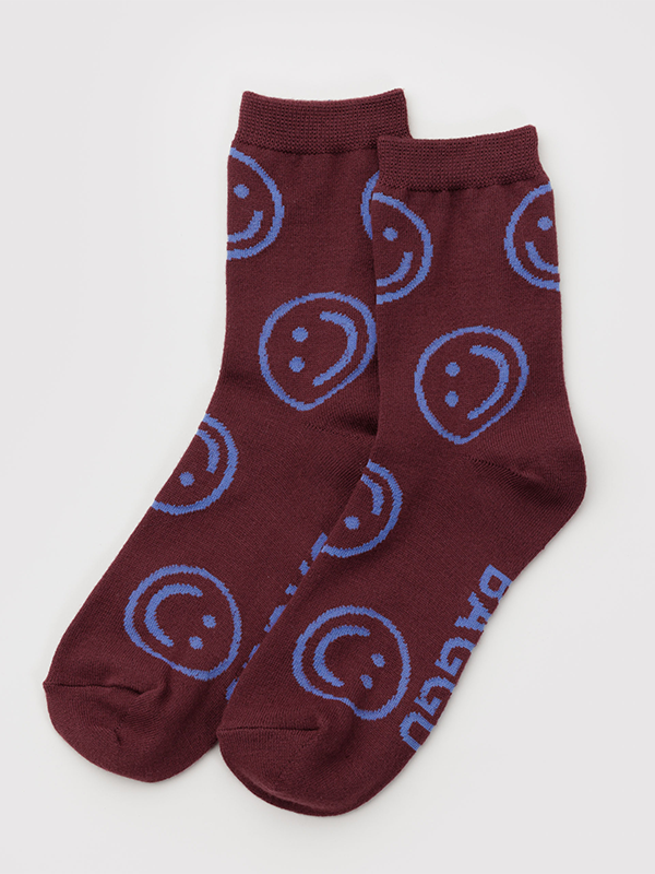 Baggu Crew Sock: Mahogany Happy