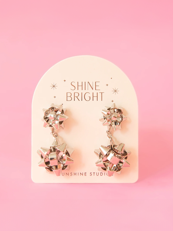 Holiday Double Bow Earrings: Silver