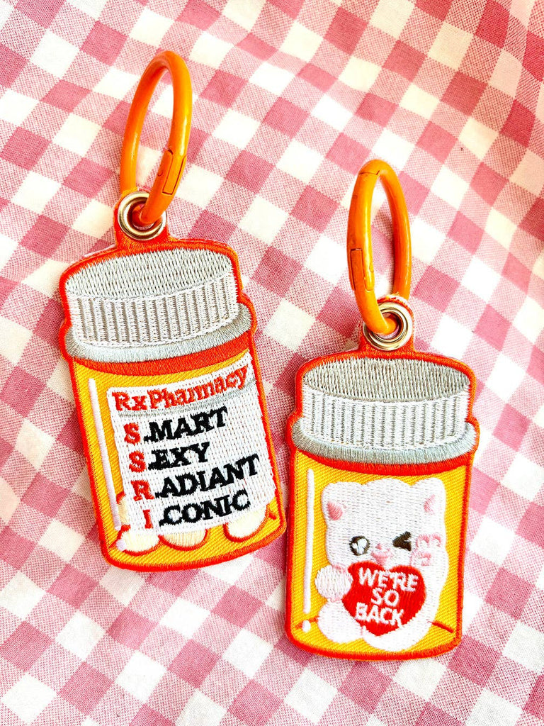 Embroidered Keychain: SSRI Medicine Bottle