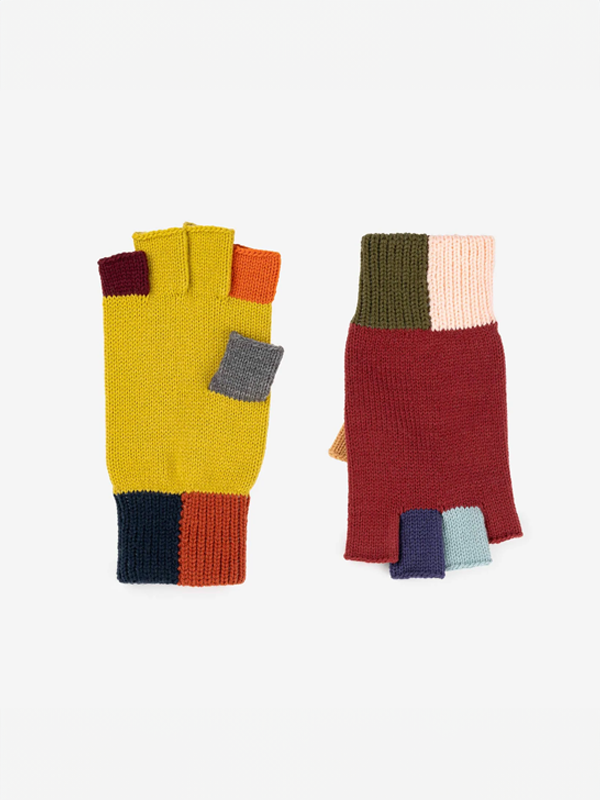 Zipper Stripe Fingerless Gloves: Peach Cobalt