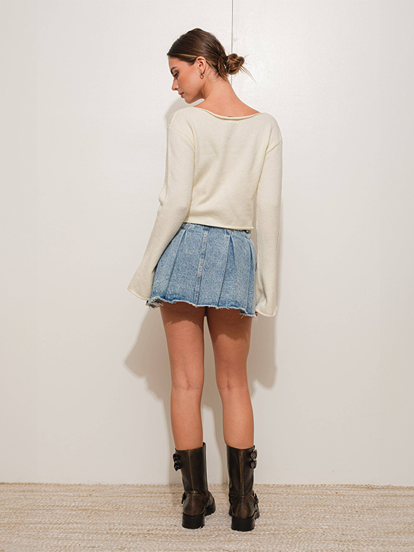 ⦠Flattering boat neckline with slightly flared sleeves and a semi-cropped cut.