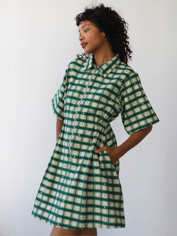 Noble's signature Utility Dress features oversized sleeves and a cinched elastic waist and full skirt for a flattering, comfortable fit. BONUS: giant pockets for all of your stuff!