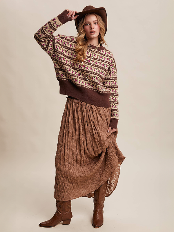 ✦ Thick ribbing on crew neckline, cuffs, and hemline.