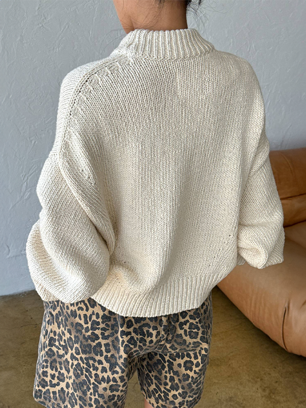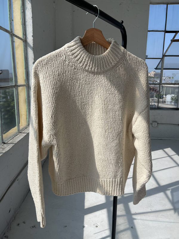 Made of mid-weight cotton and high gauge knit, it boasts a mock neck with slouchy shoulders and balloon sleeves for a relaxed fit. Ribbed trim adds a classic touch to the neck, cuffs, and hem. Layer the sweater over a cami during cooler moments, or on its own for an airy, elevated yet look.
