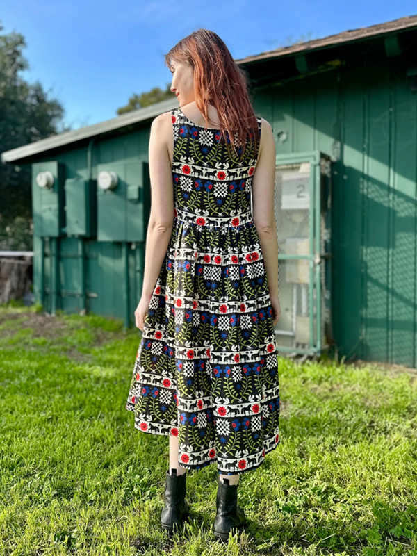 If you ever feel the need to wear something loose and billowy with soft linen that drapes all around you, this dress is for you! This style is cut out of linen, and features a relaxed fit with a loose tank style top, dropped armholes, pleated midi-length skirt, and hidden side pockets.