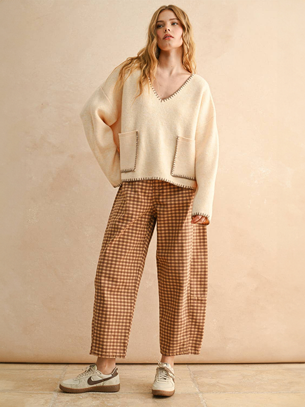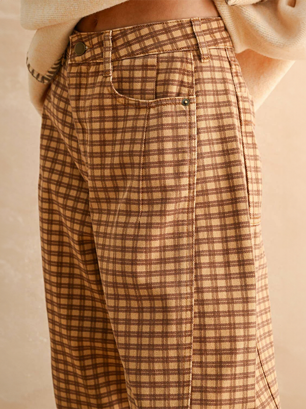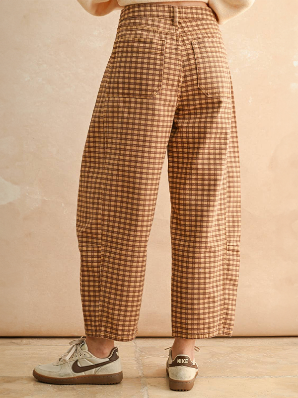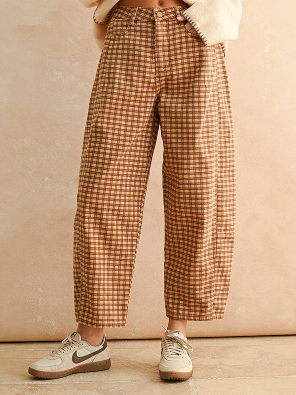 Mini Checker Pattern Barrel Pants: Camel/Chestnut