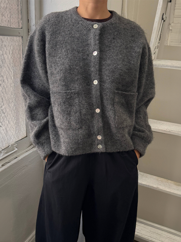 The Amélie Alpaca Cardigan is a fresh take on the classic cardigan, crafted from a soft alpaca-wool blend for a cozy yet refined feel.