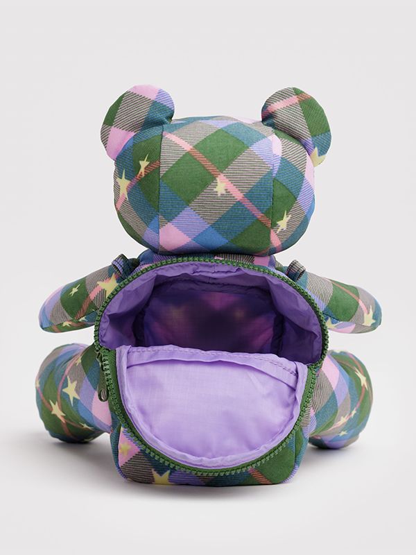A removable strap lets you wear this teddy-shaped style as a crossbody. Stuffed head, arms, and legs to hold its shape, back zip compartment to hold your things.