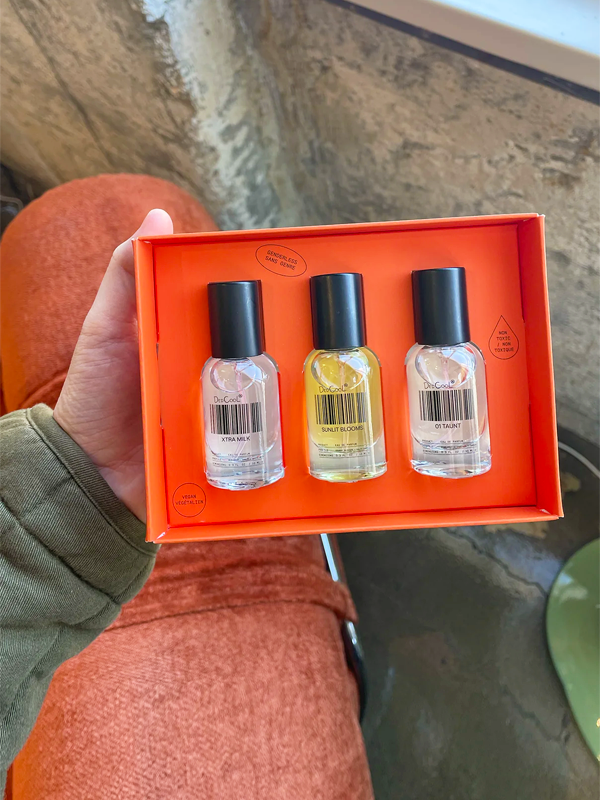 A trio of Dedcool's bestselling scents—Xtra Milk, Taunt, and Sunlit Blooms —in a brand-new 10mL deluxe sample size.