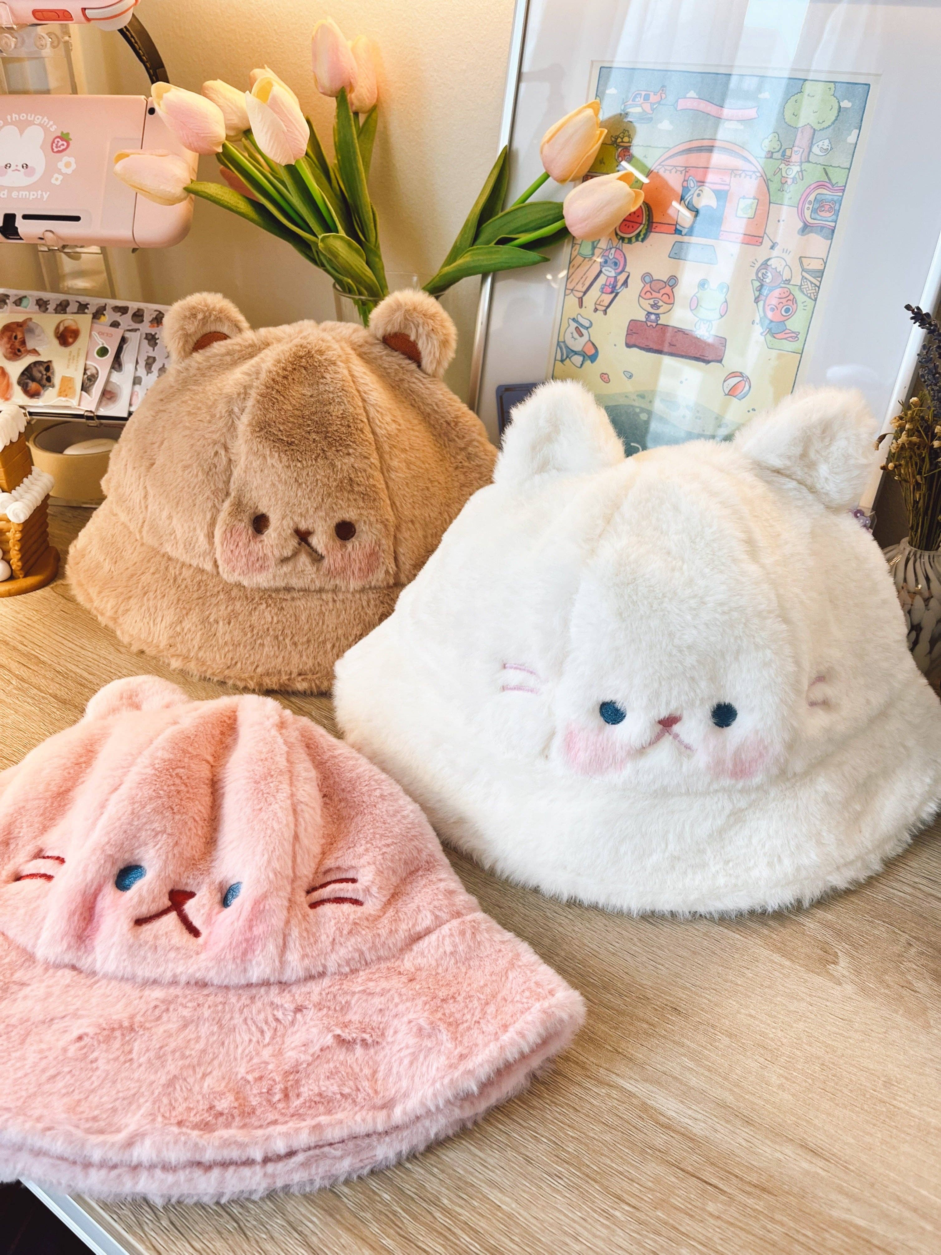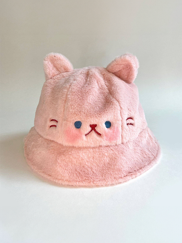 Fluffy Animal Bucket Hat: Pink Cat