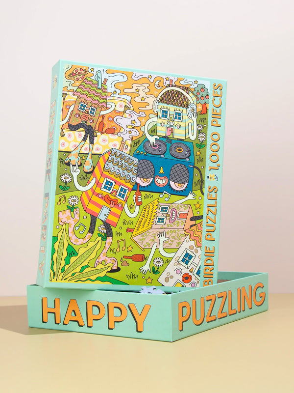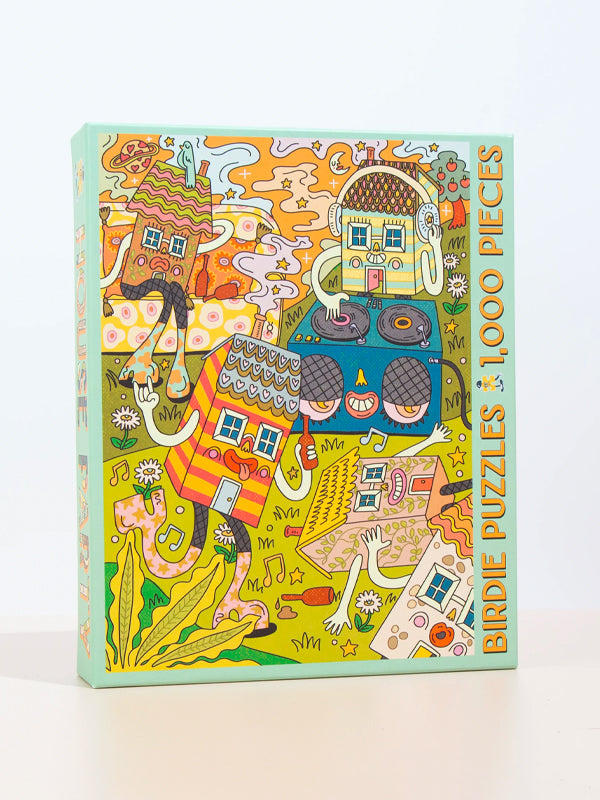About the maker: Birdie is a small company from the midwest making high-quality puzzles with independent artists and printmakers. They love the weird, offbeat, and colorful.