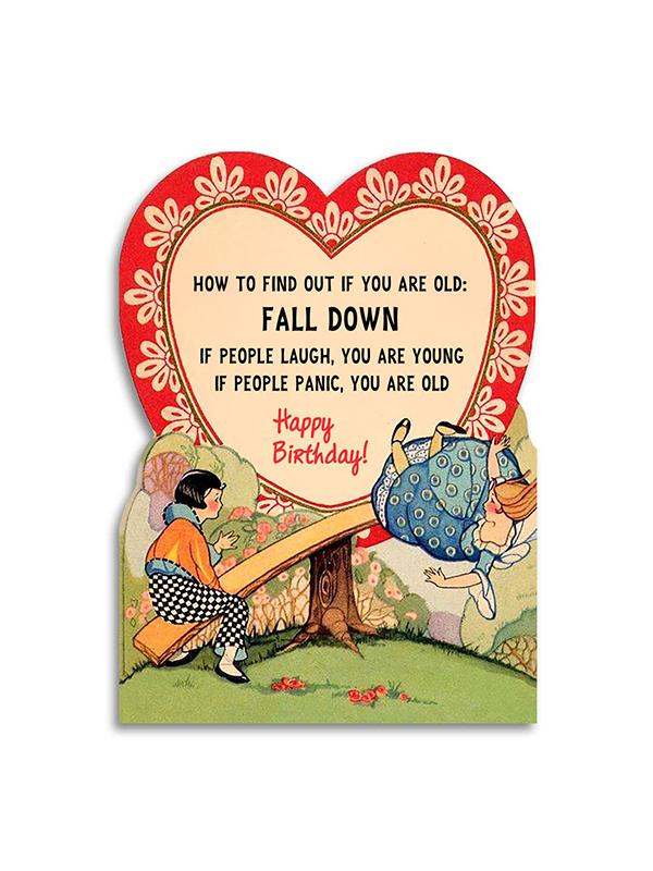 "How to find out if you are old: fall down. If people laugh, you are young. If people panic, you are old... Happy Birthday!" šŸ‘µ