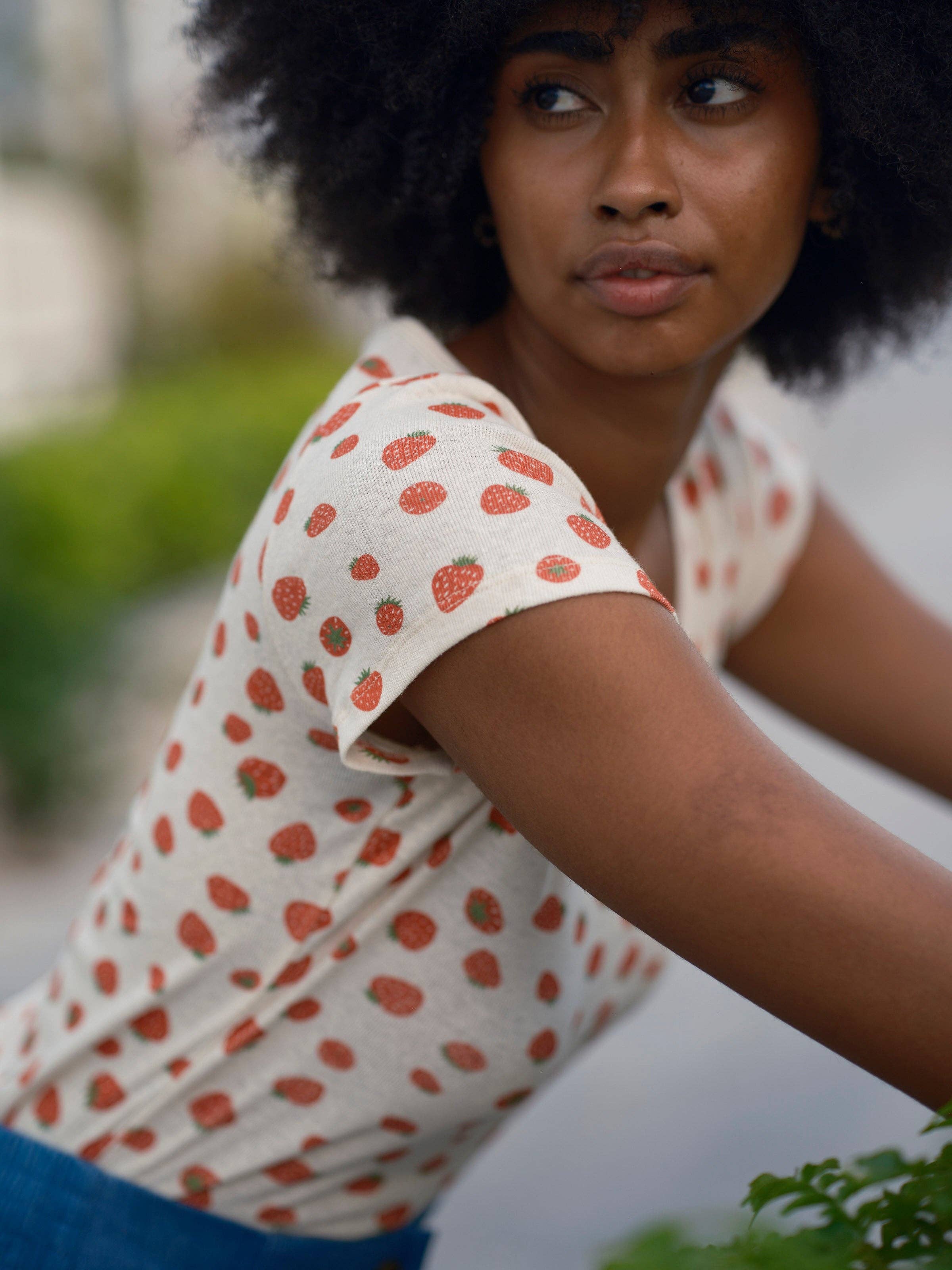 ⦠Scoop-neck 90s baby tee.