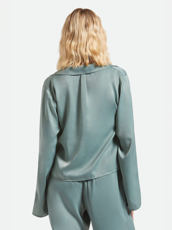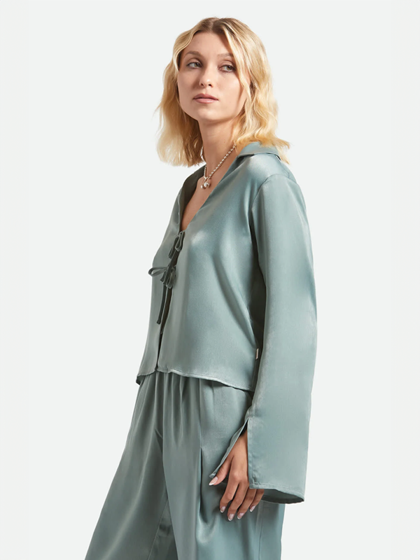 ✦ Features a chic front tie closure and slightly belled, set-in sleeves with vent openings.
