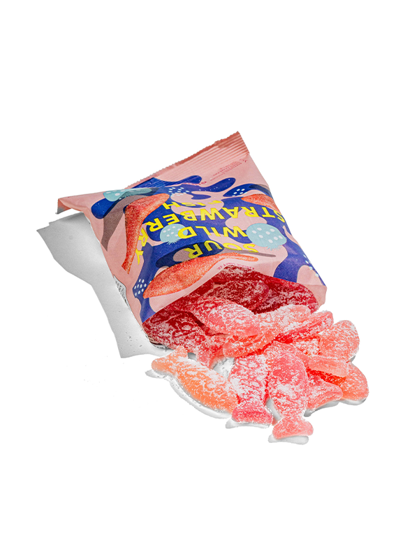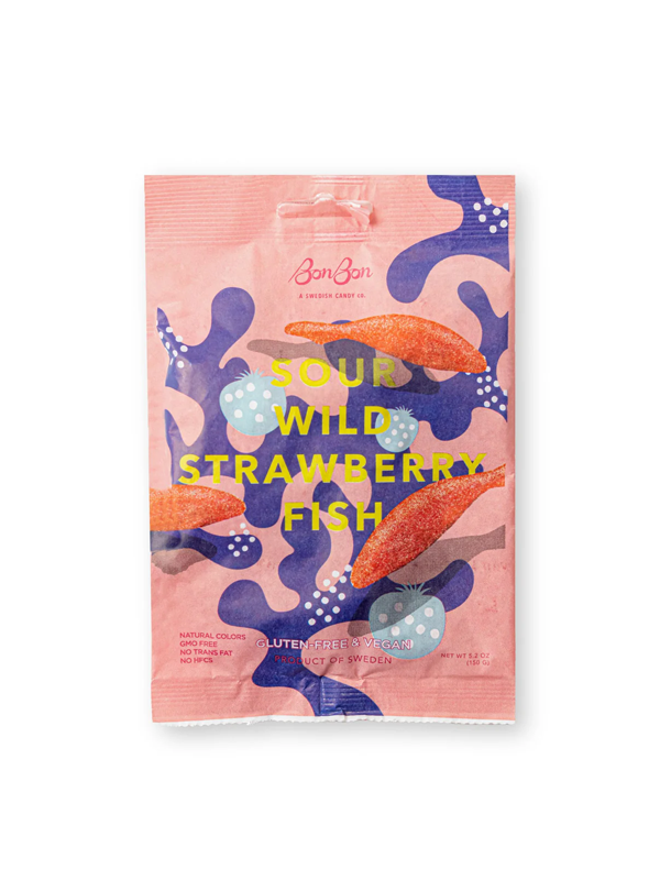 Coated in sour sugar, these wild strawberry fish are complemented by a dash of sour raspberry for that extra kick! šāØ