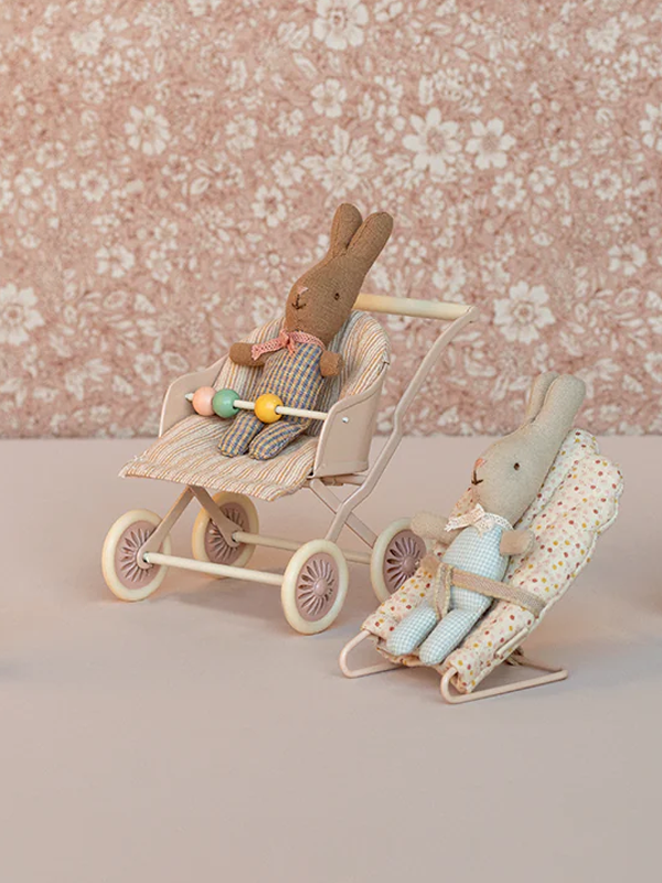 This miniature stroller is perfect for transporting your mice's babies or bunnies! The seat can be positioned both ways depending on whether the babies like to look at mum and dad or are ready to discover the world.