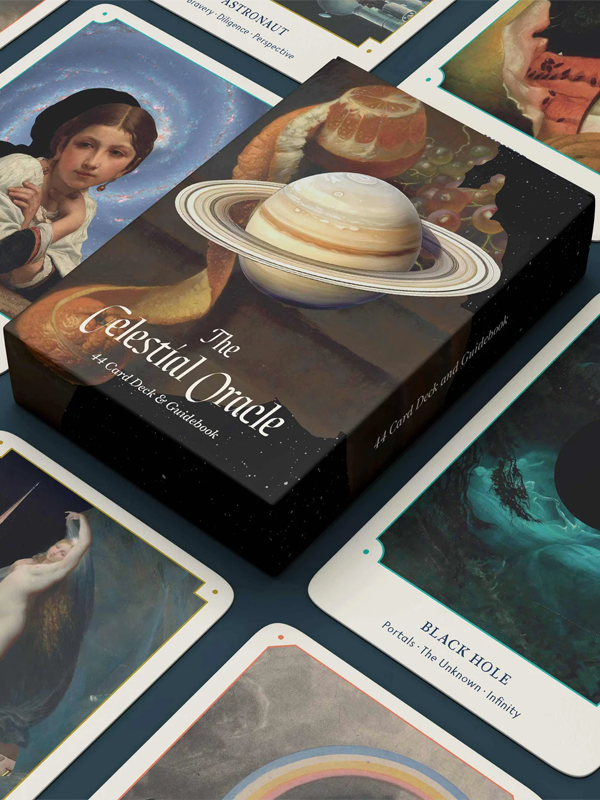 Every card in The Celestial Oracle represents an astronomical body, an atmospheric phenomenon, or a sky person — and the multitudes, layers, and connections each contains. Use these 44 cards and the accompanying guidebook to contemplate illuminations from above, unseen gravitational pulls, and the orbits of life.