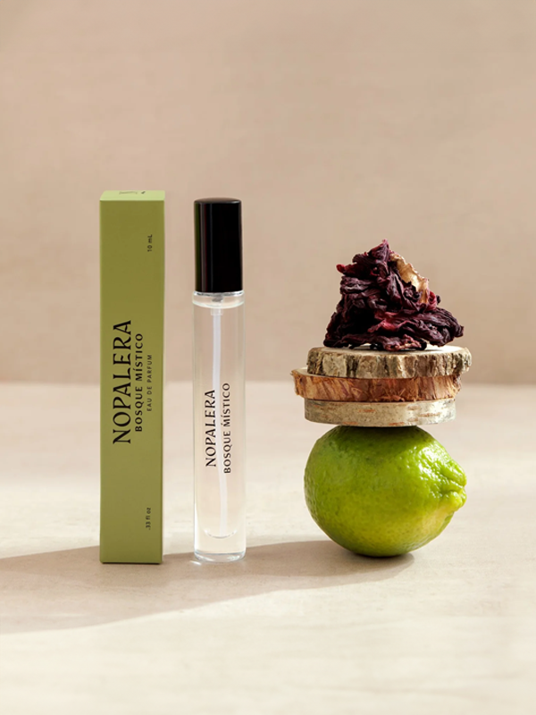 Sweet and inviting, Bosque Místico eau de parfum captures the allure of Mexico’s mystical forests with notes of sweet hibiscus, spicy pepper, and vibrant citrus zest. Honeysuckle and orris bloom at its heart, while cashmere woods wrap you in a cozy embrace.
