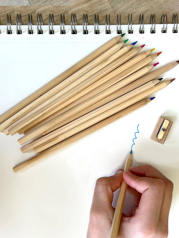 ✦ Filled with 12 brightly colored pencils and a wooden sharpener.